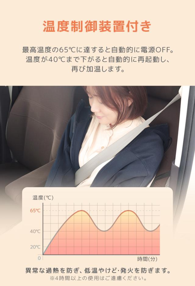 シートカバー全体に張り巡らされた電熱線により、座面から腰面までじんわりと温めます。