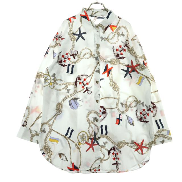 ザラ 総柄 長袖 ワイシャツ L ホワイト系 ZARA レディース