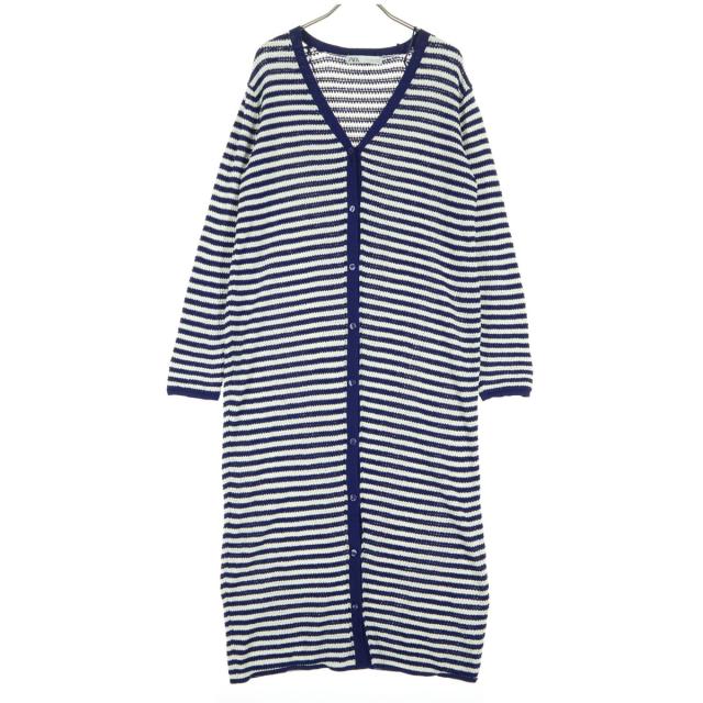 美品 ザラ ボーダー柄 長袖 ニット シャツワンピース S ネイビー ZARA レディース
