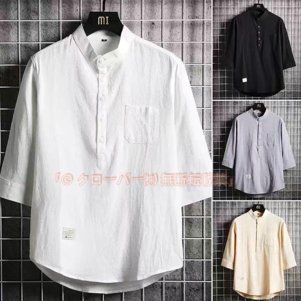 カジュアルシャツ メンズ 七分袖 7分袖 リネンシャツ 無地 シンプル クローバー株式会社 スタンドカラー 立襟 ヘンリーネック 夏服 メンズファッション スリム 父の日