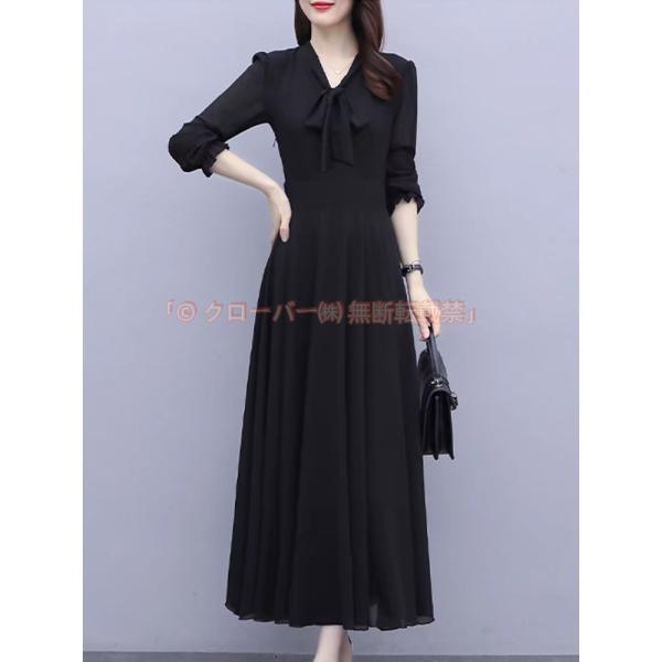 シフォンワンピース レディース 秋 Vネック 長袖 ロングワンピース フォーマル クローバー株式会社 大きいサイズ 体型カバー シンプル お呼ばれドレス 結婚式 二次会 パーティー