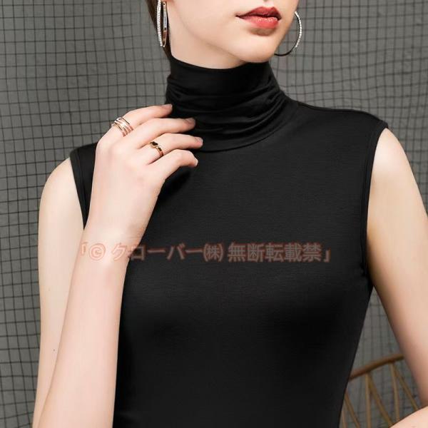 ハイネック ノースリーブ タートルネック 春夏 薄手 ボトルネック モダール クローバー株式会社 ノースリ トップス UVカット カットソー Tシャツ ストレッチ モダー
