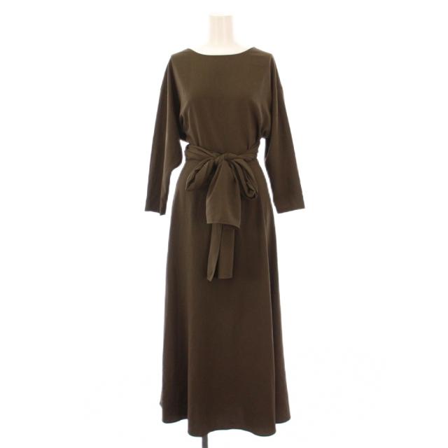 【中古】ガリャルダガランテ フレアワンピース マキシ ロング 長袖 クルーネック 無地 ストレッチ F カーキ