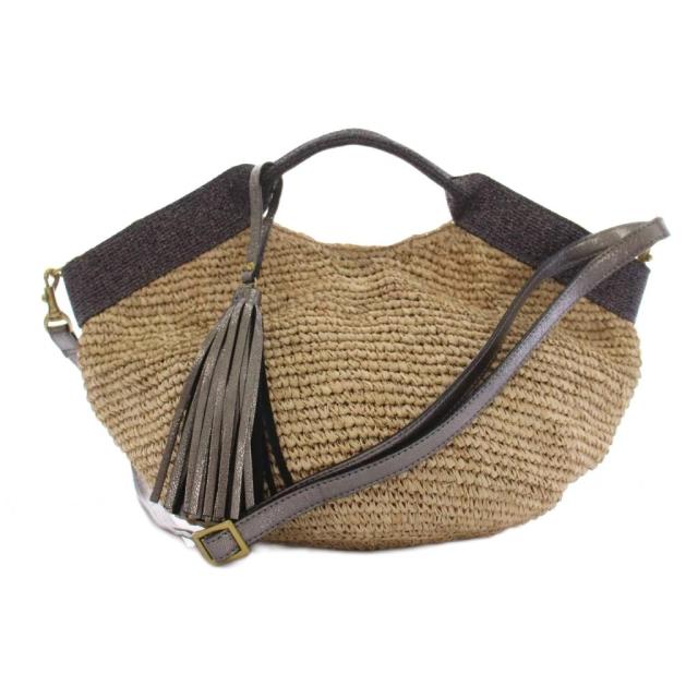 【中古】ヴィオラドーロ VIOLA d'ORO かごバッグ ラフィア ショルダーバッグ 2WAY ベージュ /YM レディース