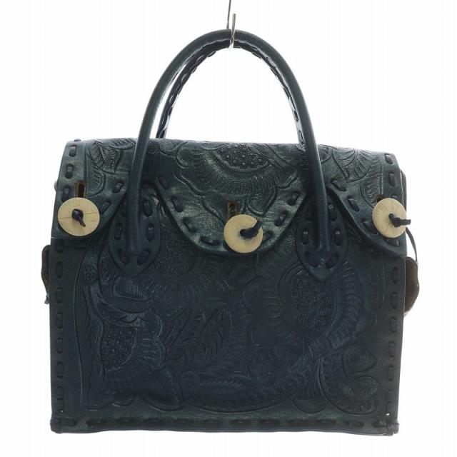 【中古】グレースコンチネンタル CARVING TRIBES マエストラ ハンドバッグ カービングバッグ レザー 総柄 青 紺