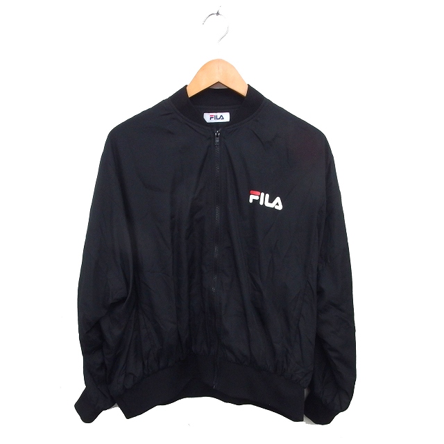 【中古】フィラ FILA 国内正規品 RCWB PEAC ビッグシルエット ブルゾン ジャンパー リブ ロゴプリント M 黒 ブラック