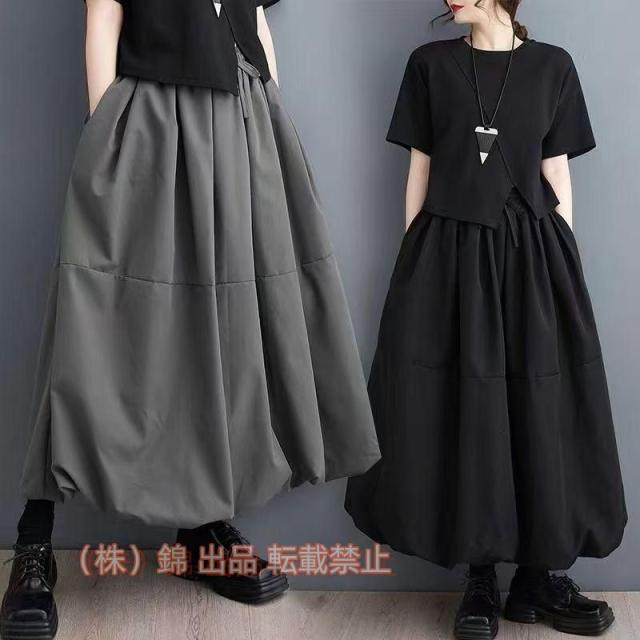 新色登場!フレアスカート レディース スカート 春 膝下 ロングスカート 秋冬 ロング丈 体型カバー 大人 錦 きれいめバルーンスカート ウエストゴム 黒