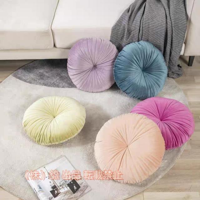 丸座布団 おしゃれ ベロア ラウンドクッション 丸型 クッション黄色 座布団 クッション 株式会社錦 フロアクッション インテリア 北欧 一人暮らし