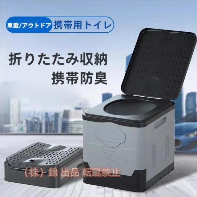 折りたたみ式の非常用トイレ、災害や車中泊、登山、アウトドア、キャンプ、様々なシーンで大活躍!椅子、ゴミ箱、ドリンクコンテナ、収納凝固剤?処理袋12回分が付いているのですぐに使えます!!■商品仕様?商品名:携帯用ポータブルトイレ?商品内容:トイレ本体(蓋つき)、収納袋、処理袋、凝固剤×12回分?サイズ:折りたたみ時 27x31.5x11cm、組み立て後 (約)27x31.5x29cm?重さ:約1.42kg?耐荷重:約150kg?カラー:ブラック、グレー、グリーン?素材:PP(水洗い可)?商品カテゴリー:防災グッズ、車載用品、介護用品、アウトドア※9月中旬?入荷次第発送させて頂きます。