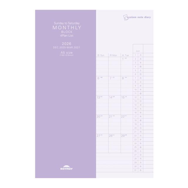 【メール便発送】レイメイ藤井 システムノートダイアリー 2026年 フォルリフィル A5 マンスリー・4プラン(日曜始まり) RFDR2668