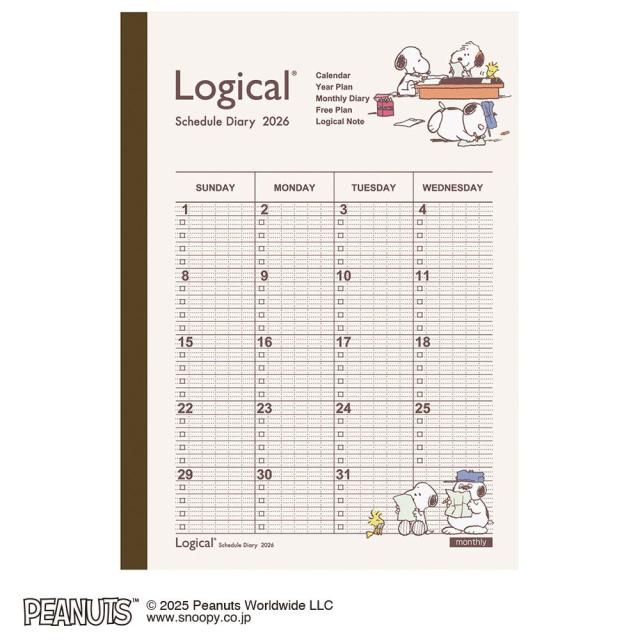 ロジカルノートタイプのスケジュール帳! ピーナッツのスヌーピーデザイン。