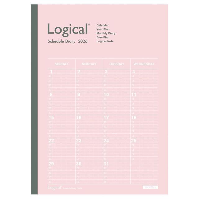 【メール便発送】ナカバヤシ 手帳 2026年 ロジカルダイアリー 月間ノートタイプA B5 ピンク NS-B502-26AP