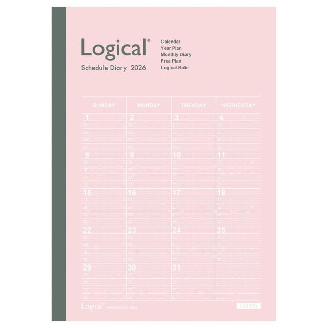 【メール便発送】ナカバヤシ 手帳 2026年 ロジカルダイアリー 月間ノートタイプA A5 ピンク NS-A502-26AP