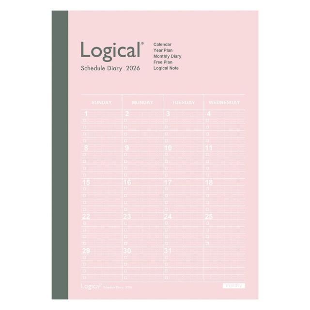 【メール便発送】ナカバヤシ 手帳 2026年 ロジカルダイアリー 月間ノートタイプA B6 ピンク NS-B602-26AP