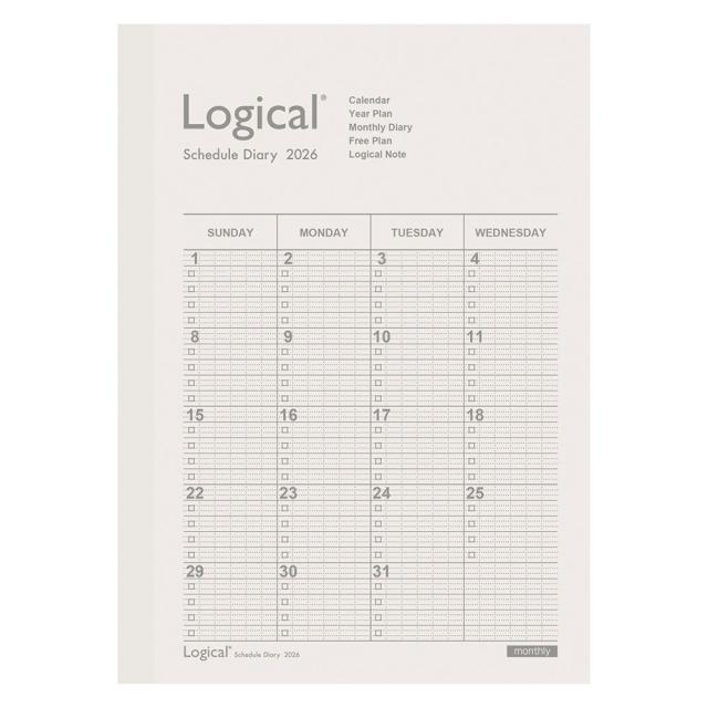 【メール便発送】ナカバヤシ 手帳 2026年 ロジカルダイアリー 月間ノートタイプA B6 ホワイト NS-B602-26AW