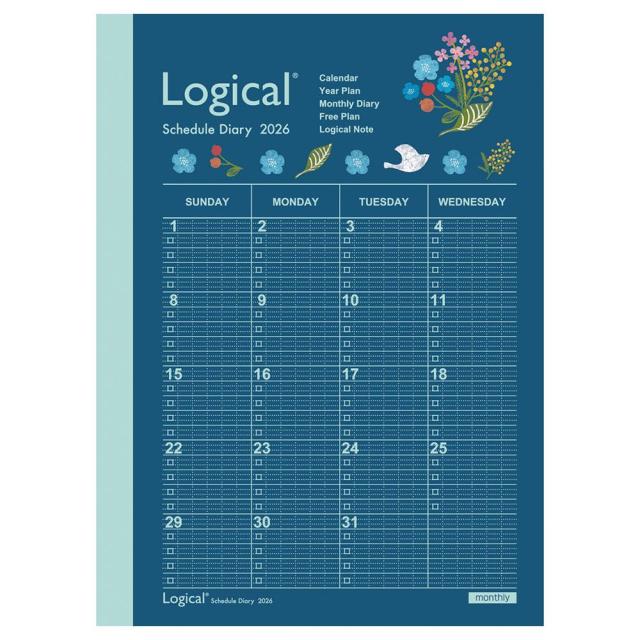 【メール便発送】ナカバヤシ 手帳 2026年 ロジカルダイアリー 月間ノートタイプA A6 フラワー NS-A602-26AS2