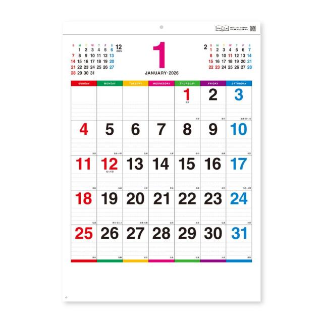 新日本カレンダー 2026年 壁掛けカレンダー カラーラインメモ NK174 【北海道・沖縄・離島配送不可】