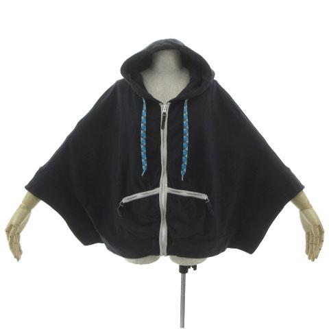 【中古】メルシーボークー mercibeaucoup ポンチョ風スウェットパーカー MB13JC243 ジップアップ ネイビー 紺 白 1