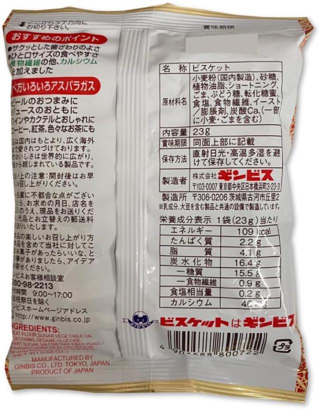 ギンビス ミニアスパラガス 23g 20袋セット 個包装 ビスケット クッキー カルシウム 卵不使用 食物繊維入り お菓子 まとめ買い 黒ごま風味 小分け おやつ