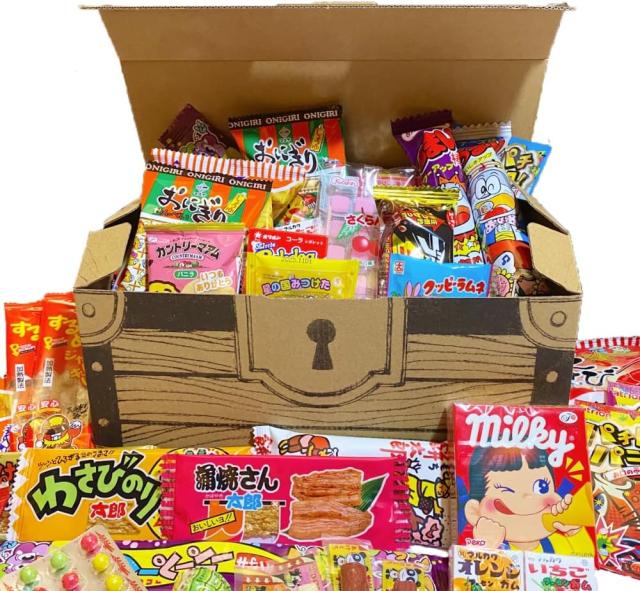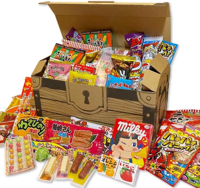 宝箱型のBOXにぎっしりと詰め込まれた駄菓子は、大容量で満足感たっぷり。友達や家族とシェアして楽しむのはもちろん、イベントやパーティーの盛り上げ役としても活躍します。サプライズプレゼントや景品としても人気で、贈る相手に驚きと楽しみを届けられるアイテムです。