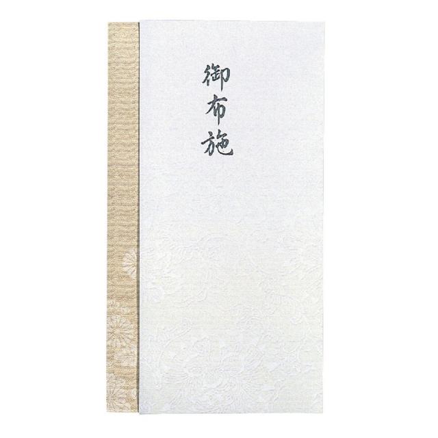 仏式の葬儀、法要、開眼などの僧侶への謝礼の金包みとしてご利用頂ける多当です。地紋風の柄がおしゃれです。「御布施」の文字が墨色で印刷されています。中袋付。