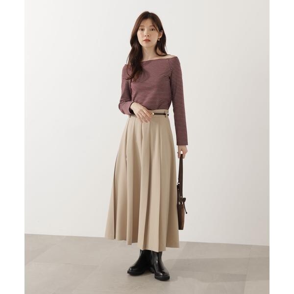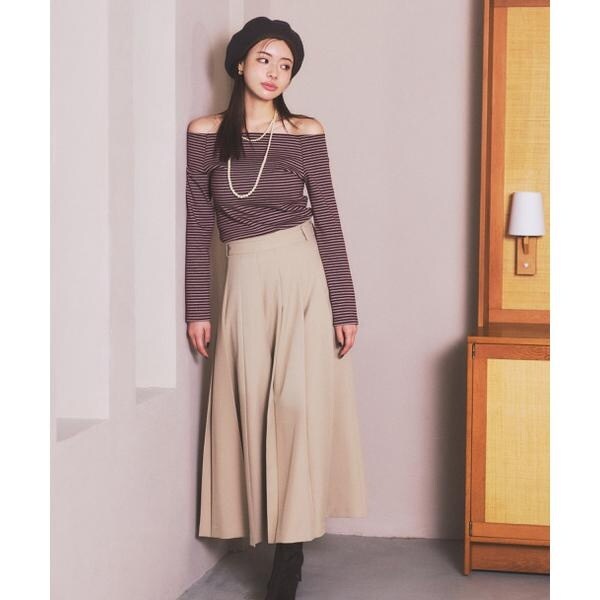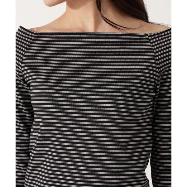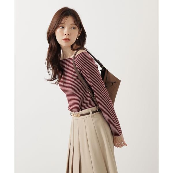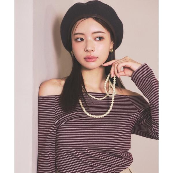 ボーダーがアクセントになるシンプルなオフショルカットソーです。いやらしくない、ヘルシーなデコルテ見せがポイント。シンプルなデザインなのでボトムスを選ばず、フェミニンなスカートもカジュアルなデニムスタイルも楽しめます。
