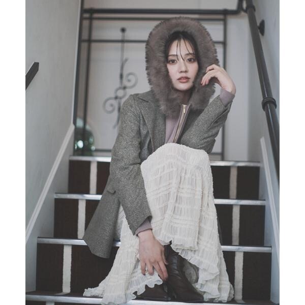 ボリュームのあるフェイクファーがオトナ可愛いニットパーカーです。顔まわりを華やかに見せながら、ボリュームのあるフェイクファーで防寒対策もばっちり。前を閉めてプルオーバー風に着こなせます。ニットとフェイクファーの微配色もポイント。しっかりとした編地で今から長く着用いただけます。フードまわりのフェイクファーは取り外し出来ます。
