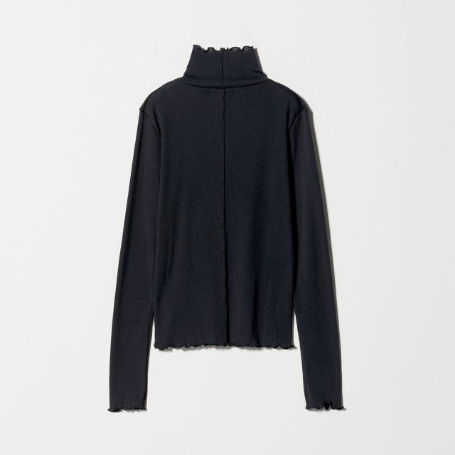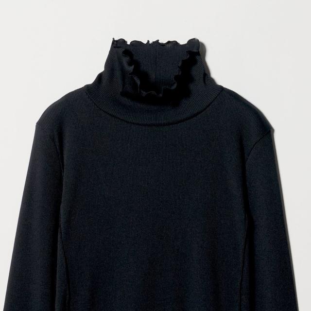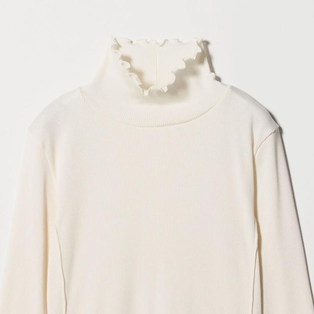 タートルネックとやや長めの袖が、存在感のある秋冬のインナー使いを叶えます。