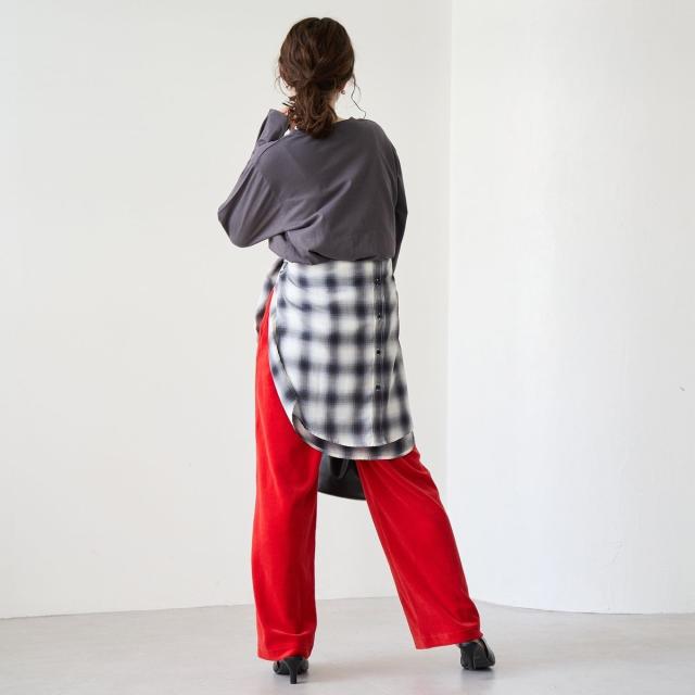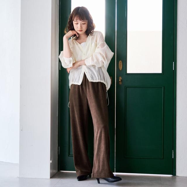 カラーで遊べる、トレンド感たっぷりのベロアパンツ