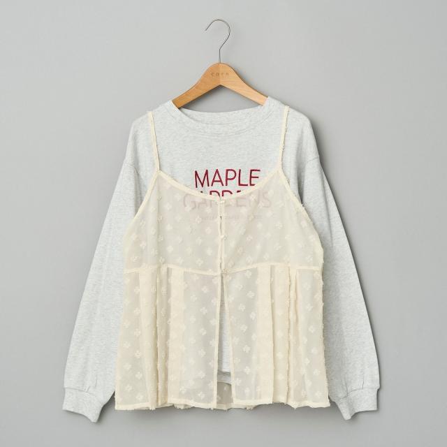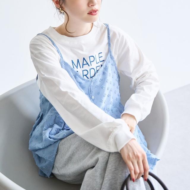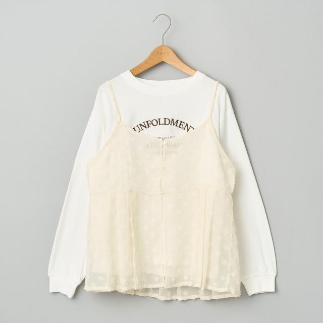 ・オリジナル刺繍ロゴが目を引くTシャツと、シアードットのキャミソールがセットになった特別感あるアイテム