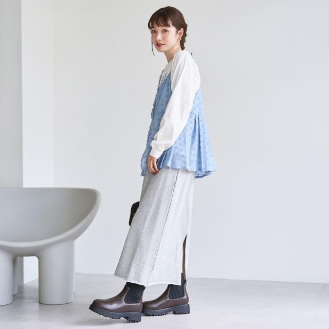 ・長く使えるコットン素材のカットソーと、軽やかなシフォンを掛け合わせ、季節をまたいで楽しめるデザイン