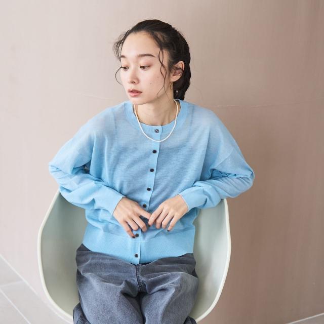 上品な透け感が魅力のシアー素材を使用したカーディガン。