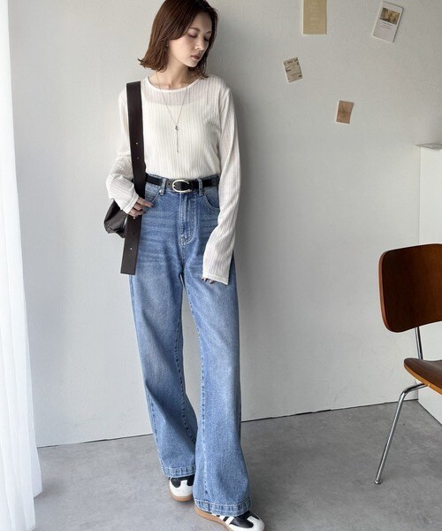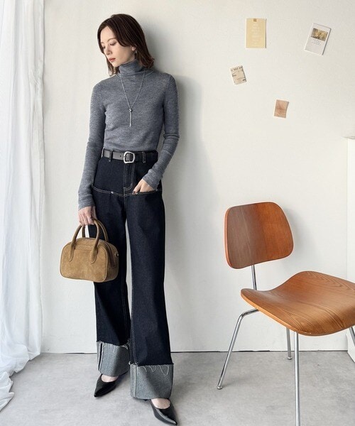 デニムやワイドパンツと合わせれば、大人のカジュアルコーデが完成。