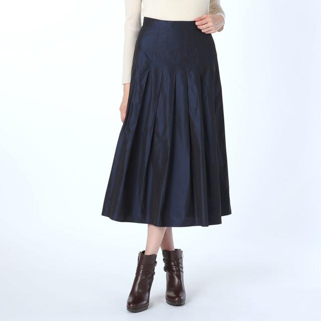 美しい光沢のある、シャンブレータフタスカート。タフタによる自然なハリ感で、シルエットが綺麗に保たれます。安心のロング丈は、大人の着こなしにぴったりです。バレエシューズなど、フラットシューズに合わせてリラクシーに着こなすのがおすすめ。厚手のニットやブーツを合わせると、冬仕様にアレンジができます。