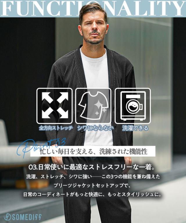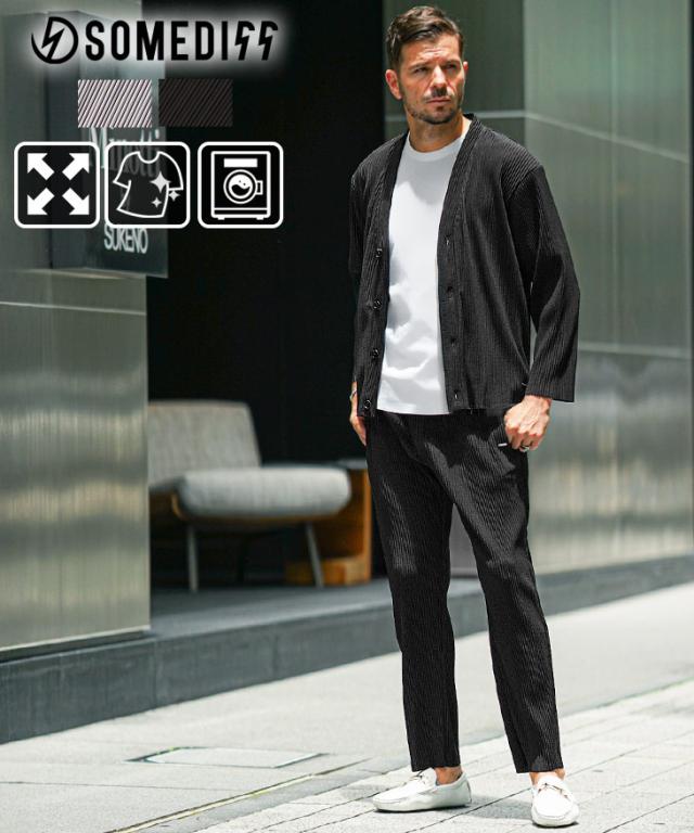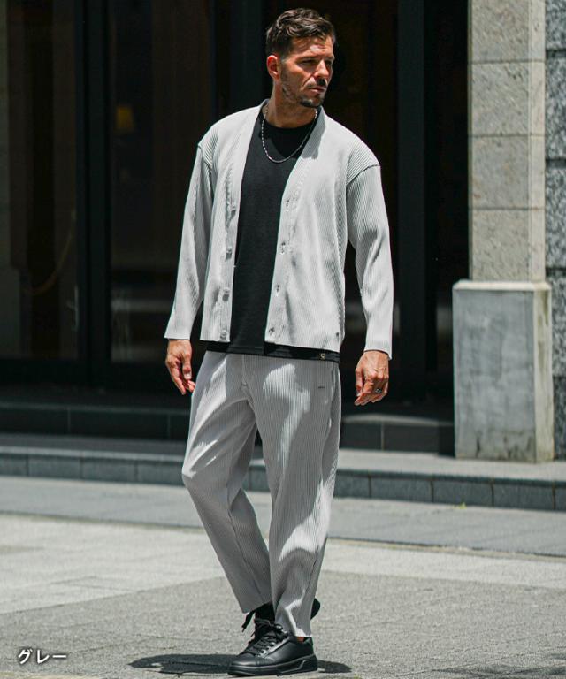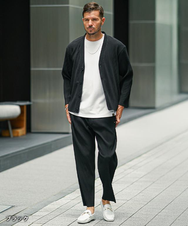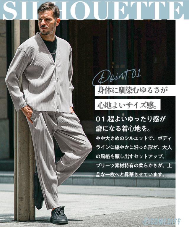 セットアップ メンズ カーディガン 上下セット メンズ プリーツ おしゃれ 羽織り メンズ 秋 イージーパンツ メンズ ビジカジ カーディガン メンズ ブランド 大きいサイズ 上下 セット 新作