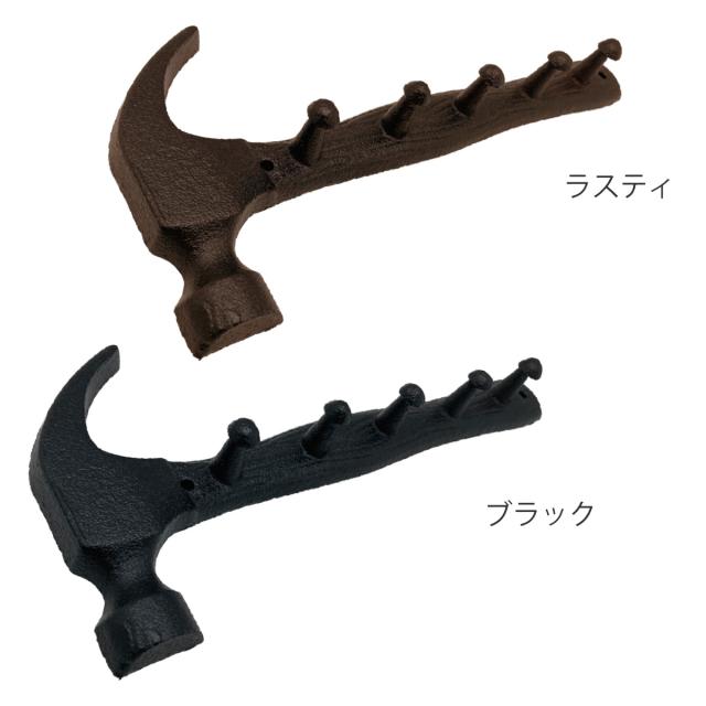 フック キャストアイアン 5ハンマー 壁掛け ( 壁 DIY 壁掛けフック アイアン 金具 ネジ ウォールフック 収納 5連 ネジ止め アンティーク ヴィンテージ おしゃれ 壁面フック 壁面収納 工具 ハンマー デザイン )