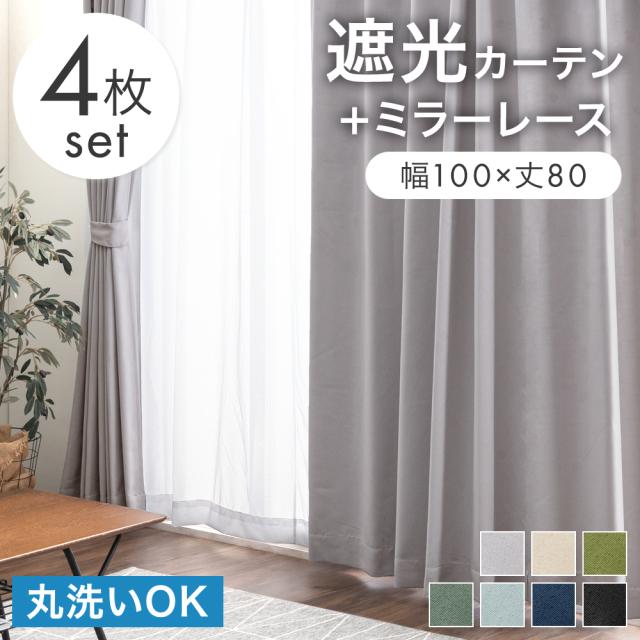 カーテン 4枚セット 遮光 幅100cm 丈80cm ドレープカーテン レースカーテン タッセル 遮光カーテン 1級 2級 既成 カーテン ミラーレース レース 遮像 断熱 節電 遮光カーテン 透けない 洗える 4枚 セット シンプル かわいい