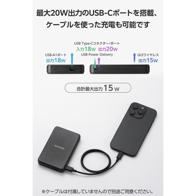 【エレコム マグネット式 Qi2 最大15W モバイルバッテリー 10000mAh 大容量 ブラックの商品詳細】
