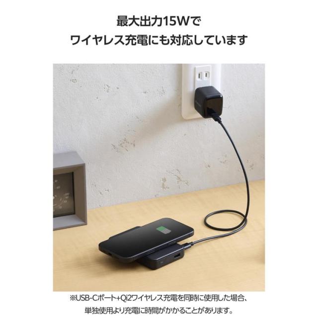 ●USB Type-C+Qi2ワイヤレス、またはUSB-A+Qi2ワイヤレスで充電した場合、Qi2ワイヤレス出力が停止し、単ポート時の最大出力(USB Type-C:20W、USB-A:18W)になります。