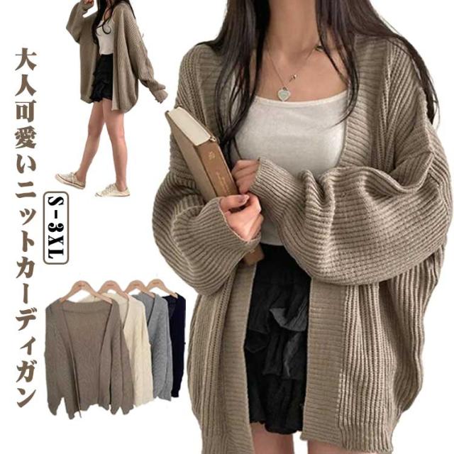 ニットカーディガン レディース カーディガン カーディガン 羽織り カーディガン ゆったり ニット トップス おしゃれ カジュアル長袖 大人 オフィス 秋冬 ドロップショルダー 無地 シンプル かわいい 通勤 オフェス OL 体型カバー 女性 大きいサイズ