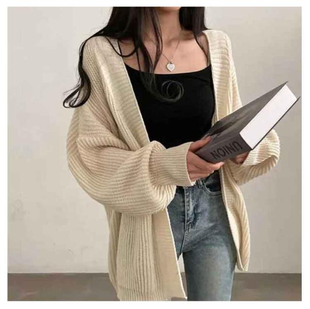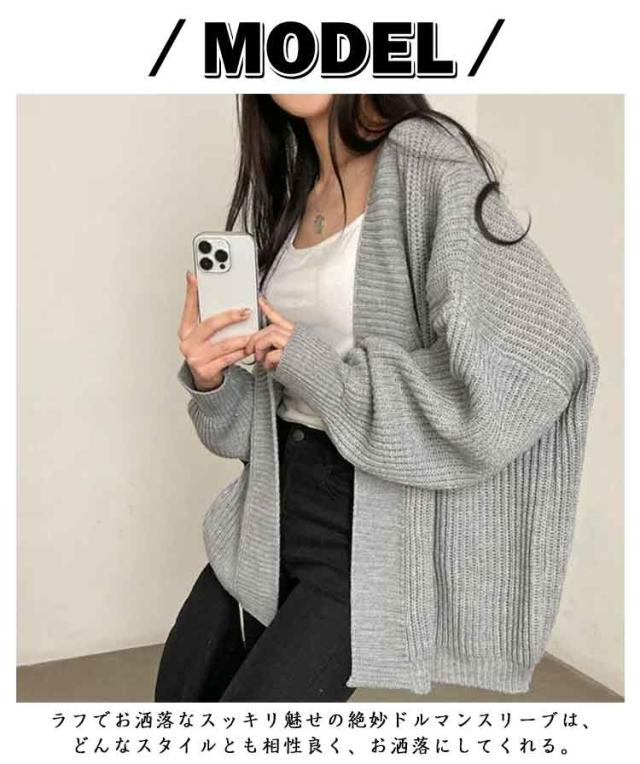| 大人可愛いニットカーディガン ラフでお洒落なスッキリ魅せの絶妙ドルマンスリーブは、どんなスタイルとも相性良く、お洒落にしてくれる。 スカートにもスキニーにもワイドパンツにも! カジュアルからキレイ目まで相性バッチリの着回し力! 着回しがきくカーディガンは持っていて無駄にはなりません! しっかり薄手過ぎない厚みで冷えやすいオフィスでも大活躍! | |