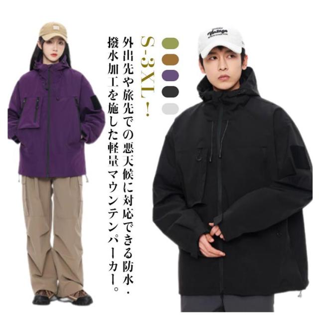 | 男女兼用!外出先や旅先での悪天候に対応できる防水・撥水加工を施した軽量マウンテンパーカー。S-3XL! 防水・撥水加工を施しており、突然の雨でも安心。 軽量かつ薄手の素材感はさっと羽織るライトアウターとして最適です。 シンプルなデザインかつ実用性高い機能性を兼ね備えており、通勤通学の普段着としてはもちろん、ゴルフ、旅行、ハイキング、セーリング、釣り、キャンプ、登山などのアウトドアシーンでも使用できる汎用性の高いジャケットです。 | |