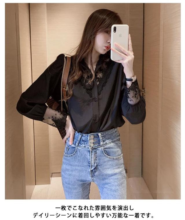 レースインナー チュニック シャツ レース ネック シャツ レース ブラウスシャツ シアー 花柄レース ブラウス ブラウス スーツ 長袖 レディース トップス レイヤード 大人 春 夏 羽織 レース シフォン