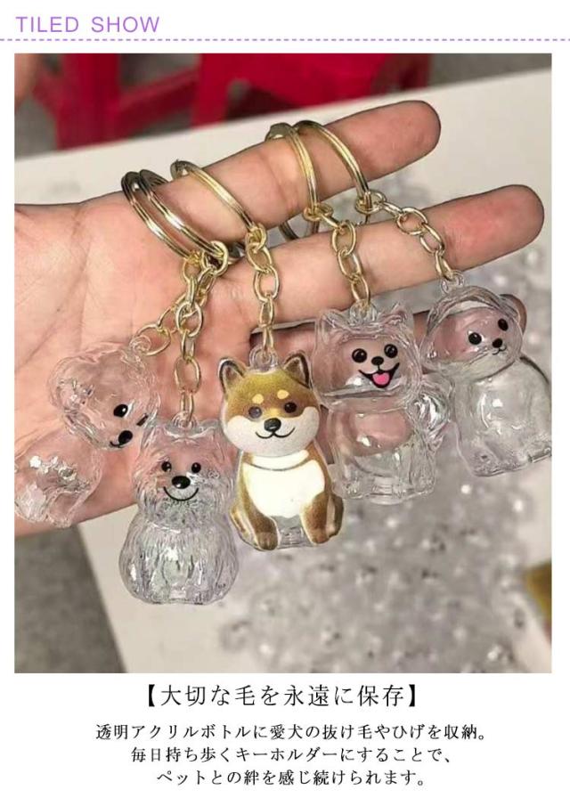 誕生日 犬種別 メモリアルグッズ 犬 ペット毛 毛玉 キーホルダー 透明 記念 保存ボトル おしゃれ ギフト アクセサリー メモリアル 5個セット 思い出グッズ 供養アクセサリー びん 入れ物 ケース ポーチ プレゼント 犬 記念日 ペットグッズ