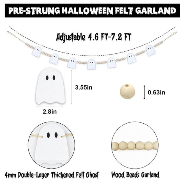 ハロウィン ガーランド パーテイー小物、フェルトの魔女のハロウィンガーランド ハロウィン ハロウィン ハロウィン 装飾 木製ビーズ付き 長さ3m