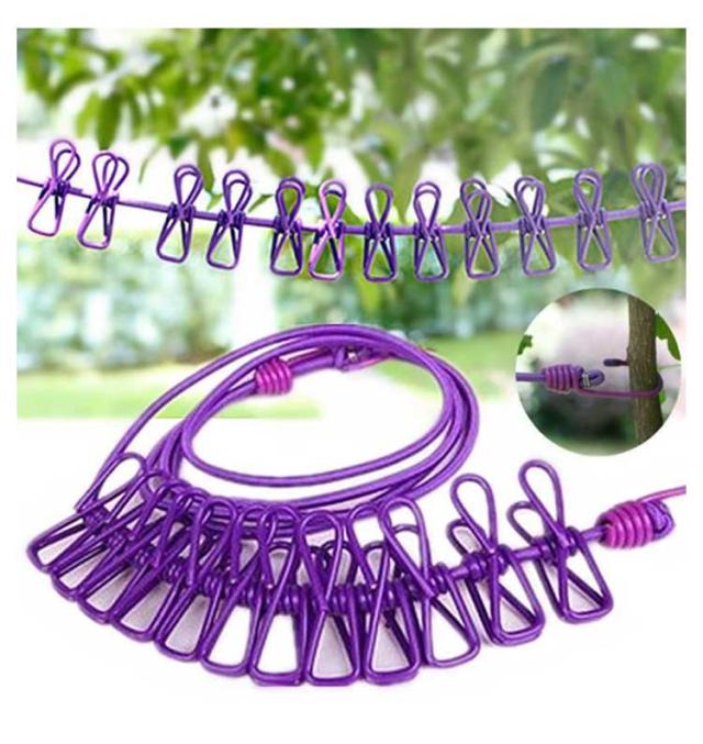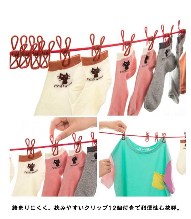 物干しロープ 簡単収納 ストッパー付12個の洗濯バサミ 屋内 屋外 旅行 ランドリーハンガー 物干しヒモ キャンプ用 ランドリーロープ 洗濯ロープ 洗濯バサミ付ロープ 洗濯ピンチ ハンガーピンチ コンパクト 屋外 登山 出張 旅行用