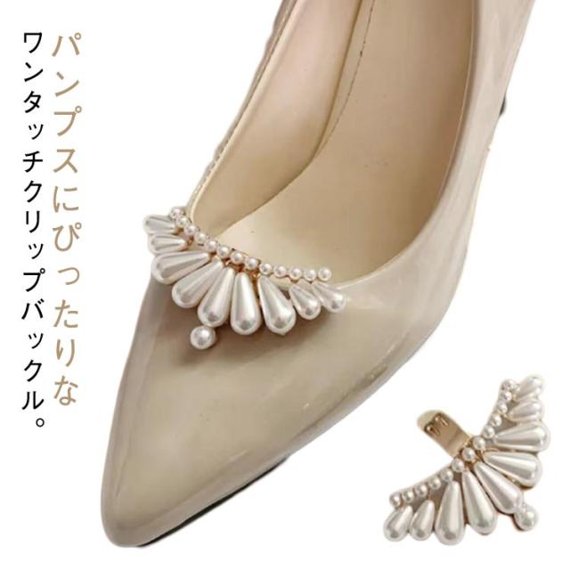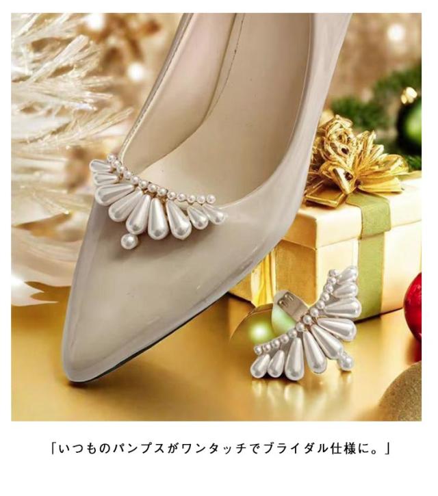 シューズクリップ パール パンプスシュークリップ ビジュー ゴージャス 結婚式 パンプス 飾り 装飾品 シューズアクセサリー クリップ 取外しOK 着せ替え シューズパーツ ウェディングシューズ ドレスシューズ ブライダルシューズ