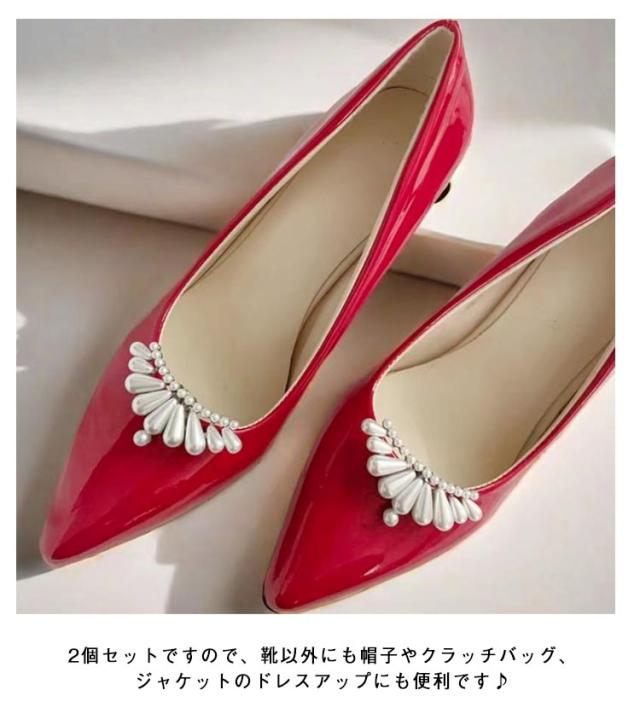 | パンプスにぴったりなワンタッチクリップバックル。 パールデザインで上品さを演出 無地のパンプスしか持っていない方必見!お手持ちのパンプス/ヒールにワンタッチで簡単装飾♪ 2個セットですので、靴以外にも帽子やクラッチバッグ、ジャケットのドレスアップにも便利です♪ 「いつものパンプスがワンタッチでブライダル仕様に。」 | |