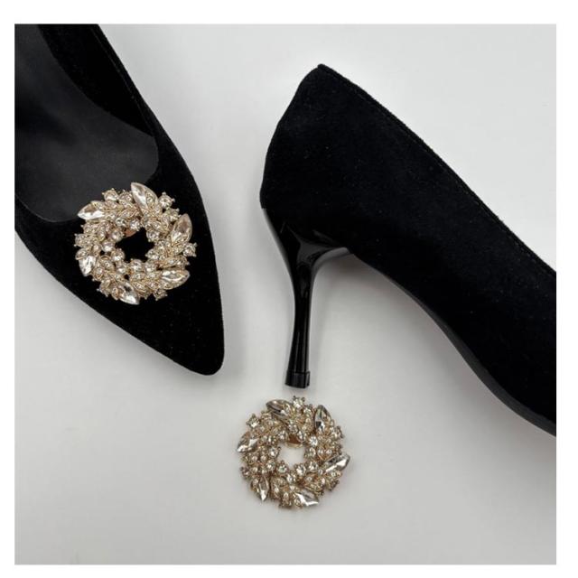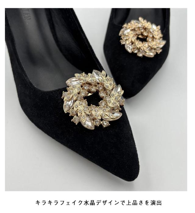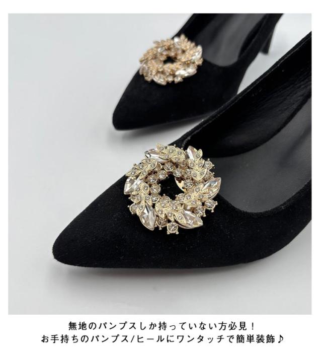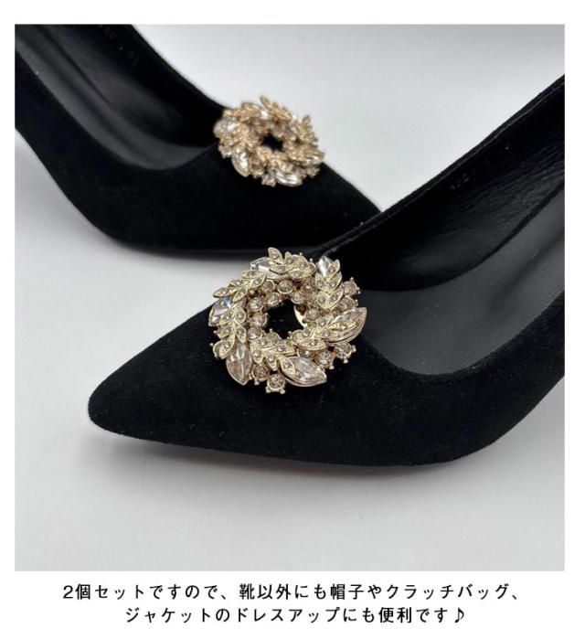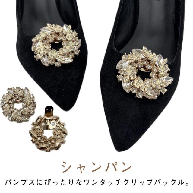 2個1組 シューズクリップ ラウンド キラキラ シャンパン シューズアクセサリー ビジュー ゴージャス お呼ばれ 結婚式 パンプス 飾り クリップ 丸 取外しOK 着せ替え レディース 女性 セレモニーシューズ パンプスクリップ 装飾品 シューズパーツ かわいい 華やか