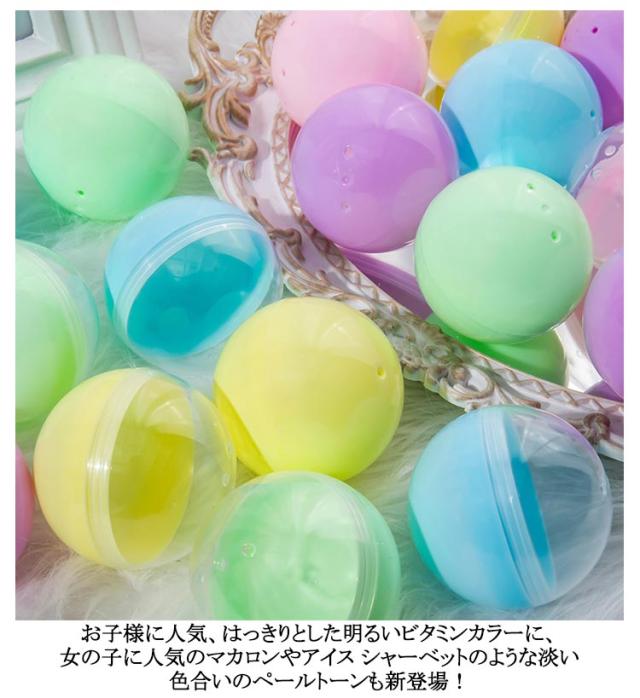 | 【200個入り】【ガチャガチャの空カプセル】 たくさん入っていますので みんなで楽しめます♪ 工作にもおすすめ☆ お子様に人気、はっきりとした明るいビタミンカラーに、女の子に人気のマカロンやアイス シャーベットのような淡い色合いのペールトーンも新登場! 女子受け抜群!ふんわりと優しいパステルカラー。 カラフルで豊富なカラーバリエーションは くじやお祭り、ビンゴ、イベントでも見映えが良いです☆ 透明と不透明のカプセルの組み合わせは中身が見えなさそうでチラッと見えたり!ドキドキ、ワクワク 盛り上がります! 景品などの小物を入れたり つかみどりやバスボム作りにも♪ 女性やお子様の手にも持ちやすく どなた様にも使って頂きやすいサイズとなっております。 親指と人差し指でカプセルを挟むようにして開封して頂けますと簡単に開くことが出来ます。 | |